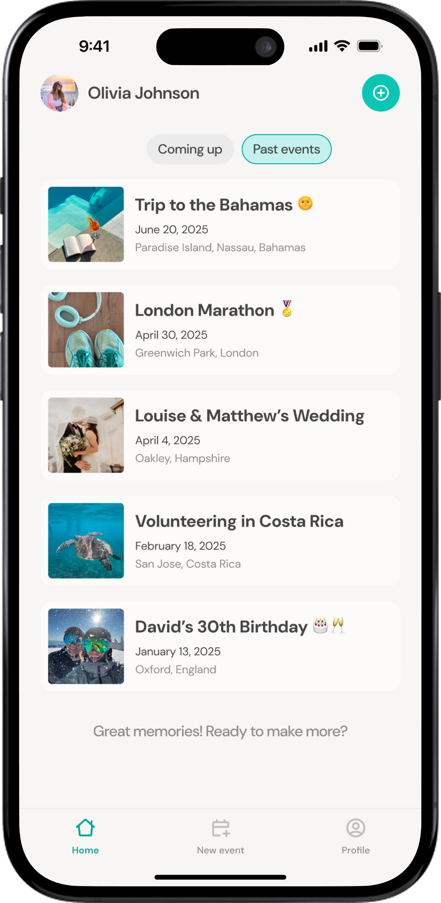 Every trip, wedding and adventure saved in one place. Revisit the memories or use last year's itinerary as a head start.